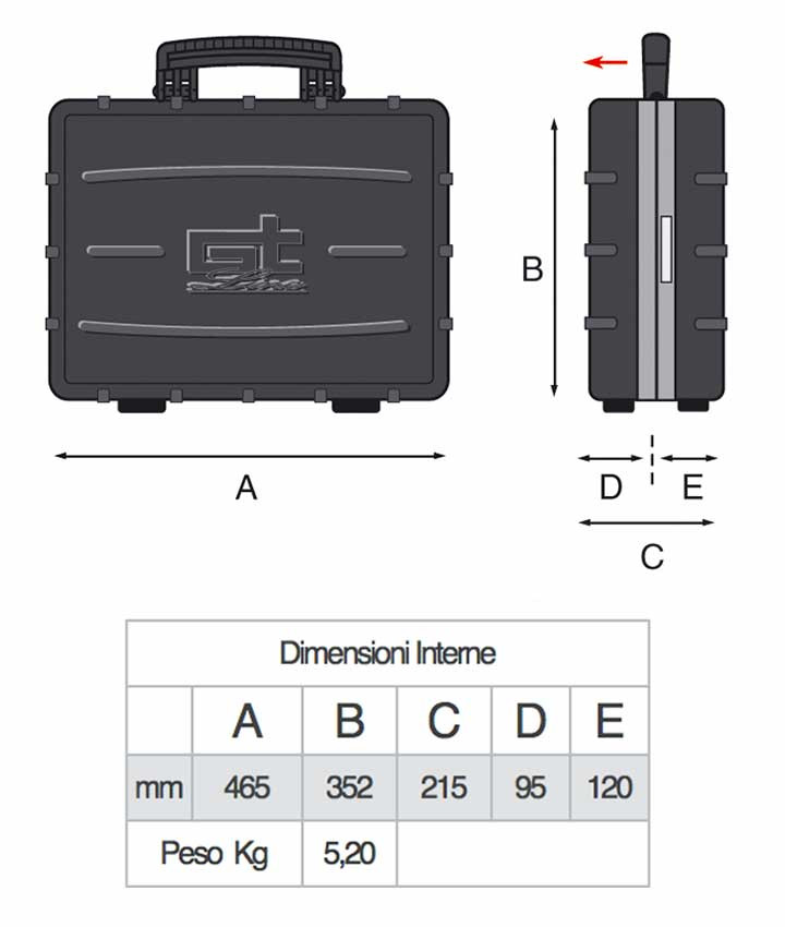 - Valigia in polipropilene ad alto spessore, stampata ad iniezione.